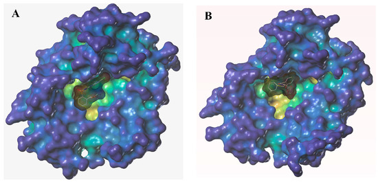 ALS is a key enzyme in the biosynthesis of branched-chain amino acids, which is the target of chlorimuron-ethyl. The crystal structure of ALS was provided by the Protein Data Bank (PDB ID 1N0H). In molecular docking studies, the binding modes of chlorimuron-ethyl to ALS were clarified (Figure 3A). Compound 4e was selected to dock with ALS due to its superior safener activity (Figure 3B). Obviously, both chlorimuron-ethyl and Compound 4e bound to the target active site of ALS. Molecular docking revealed the mechanism of the herbicidal activity: chlorimuron-ethyl prevented the substrate from binding with the active pocket by clogging the entrance to the channel. In comparison, Compound 4e sufficiently bound to the target active site and prevented the combination of chlorimuron-ethyl with the target active site. Additionally, Compound 4e had a smaller structure than chlorimuron-ethyl, hardly blocking the entrance to the channel. Therefore, there was an increased opportunity for the small substrate to enter into the channel and catalyze the active site.