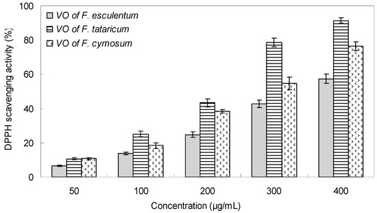 DPPH scavenging activity of the flower volatile oils of F. esculentum, F. tataricum and F. cymosum.