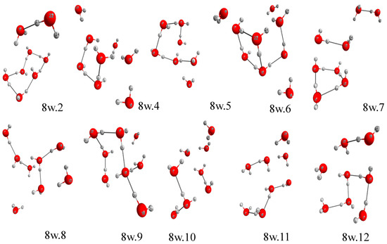 Geometries of the anionic water cluster (H2O)8, predicted theoretically by Peng Xu and Mark S. Gordon.
