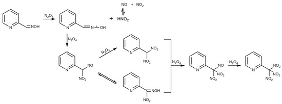 - Novikov, S.S.; Khmel’nitskii, L.I.; Novikova, T.S.; Lebedev, O.V. Reactions of N2O4 with organic compounds. VIII. Trinitromethyl derivatives of pyridine and thiophene. Chem. Heterocycl. Comp. 1970, 6, 543–545. [Google Scholar] [CrossRef]