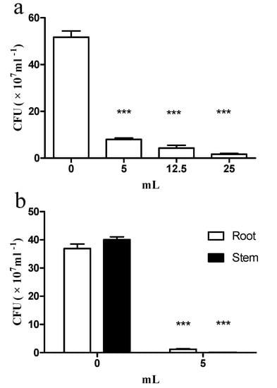 4.5. Analysis of Efficacy against Tomato Bacterial Wilt