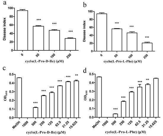 Chicago/Turabian StyleSong, Shihao, Shuna Fu, Xiuyun Sun, Peng Li, Ji’en Wu, Tingyan Dong, Fei He, and Yinyue Deng. 2018. "Identification of Cyclic Dipeptides from Escherichia coli as New Antimicrobial Agents against Ralstonia Solanacearum" Molecules 23, no. 1: 214. https://doi.org/10.3390/molecules23010214