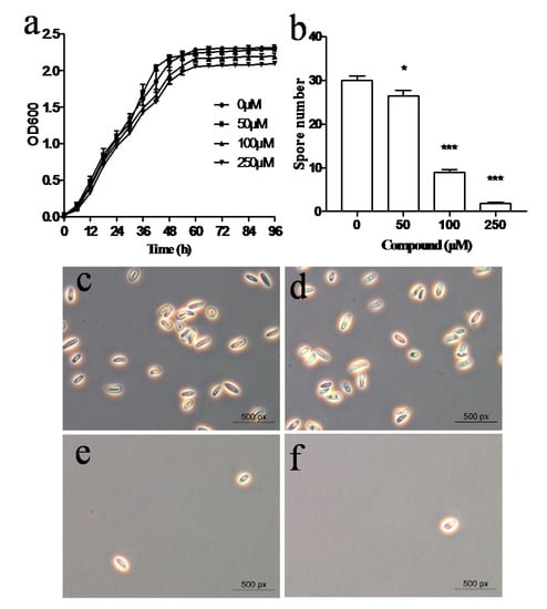 2.6. Cyclo(l-Pro-l-Phe) Inhibits Spore Formation in M. Grisea