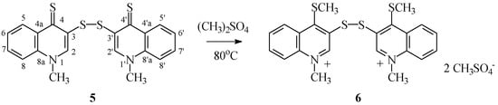 3.1.5. Synthesis of Bis-Methyl Sulfate di(1-methyl-4-(methylthio)quinolinium-3-yl) Disulfide 6