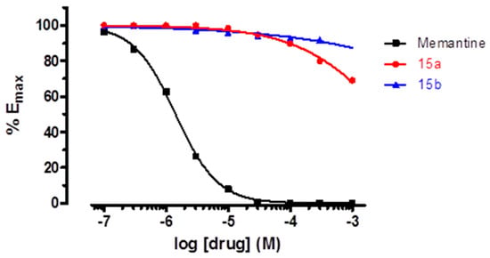 Dose–response curves for memantine and compounds 15a–b in NMDA receptors.