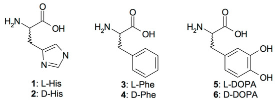 4. The least effective CruCA4 activators were l-His (1), l-/d-Phe (3,4), L-DOPA (5), l-/d-Trp (7,8), and d-Tyr (10), which have relatively limited potency as activators (KA values of 1.01 to 36.9 µM) (Table 2).