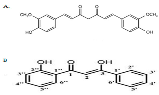 (A) Chemical structure of natural curcumin [11]; (B) Chemical structure of curcumin analog DK1 [6].
