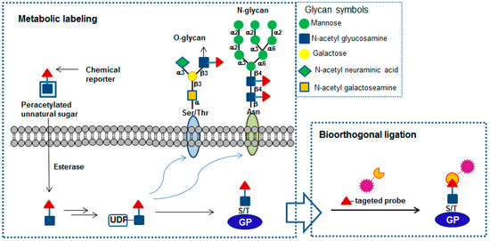 Schematic description of detection and isolation using metabolic labeling followed by bioorthogonal ligation. GP represents a glycoprotein.