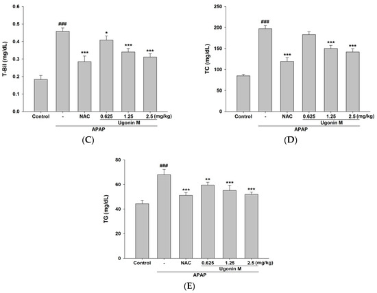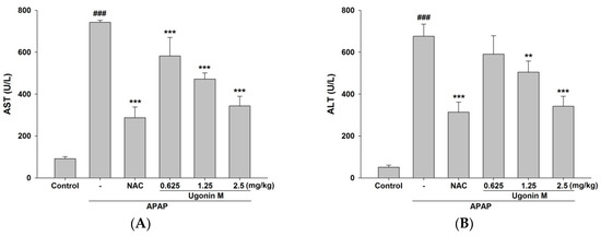 2.1. Effects of Ugonin M on APAP-Induced Liver Injury