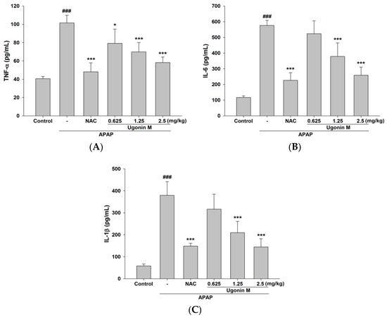 2.6. Effects of Ugonin M on Serum tumor necrosis factor-α (TNF-α), interleukin (IL)-6, and IL-1β Levels