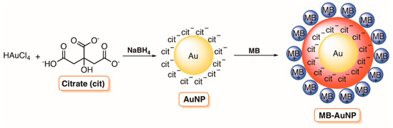 Schematic representation of the preparation of MB-AuNP conjugates (adapted from Reference [71]).