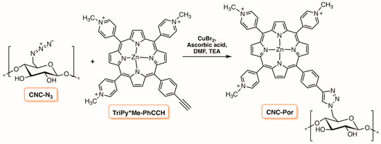 - Ringot, C.; Sol, V.; Granet, R.; Krausz, P. Porphyrin-grafted cellulose fabric: New photobactericidal material obtained by “Click-Chemistry” reaction. Mater. Lett. 2009, 63, 1889–1891. [Google Scholar] [CrossRef]