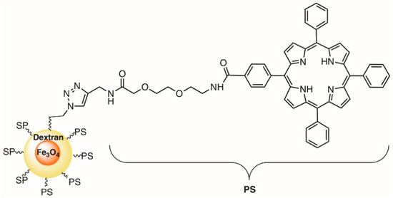 - Thandu, M.; Rapozzi, V.; Xodo, L.; Albericio, F.; Comuzzi, C.; Cavalli, S. Clicking porphyrins to magnetic nanoparticles for photodynamic therapy. Chempluschem 2014, 79, 90–98. [Google Scholar] [CrossRef]