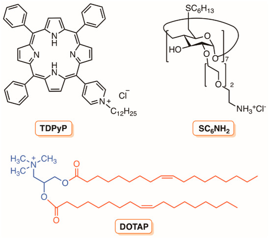 - Ferro, S.; Jori, G.; Sortino, S.; Stancanelli, R.; Nikolov, P.; Tognon, G.; Ricchelli, F.; Mazzaglia, A. Inclusion of 5-[4-(1-Dodecanoylpyridinium)]-10,15,20-triphenylporphine in Supramolecular Aggregates of Cationic Amphiphilic Cyclodextrins: Physicochemical Characterization of the Complexes and Strengthening of the Antimicrobial Photosensitizing Activity. Biomacromolecules 2009, 10, 2592–2600. [Google Scholar] [CrossRef] [PubMed]