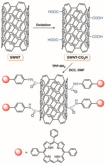 - Sah, U.; Sharma, K.; Chaudhri, N.; Sankar, M.; Gopinath, P. Antimicrobial photodynamic therapy: Single-walled carbon nanotube (SWCNT)-Porphyrin conjugate for visible light mediated inactivation of Staphylococcus aureus. Colloids Surfaces B Biointerfaces 2018, 162, 108–117. [Google Scholar] [CrossRef] [PubMed]