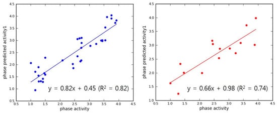 The success of a virtual screening campaign using a QSAR model depends heavily on the quality of the model. Several statistical parameters in PHASE, such as R2 for the training set and Q2 for the test set, the standard deviation, root mean square error, and variance ratio (F), can be used to evaluate the robustness of a QSAR model [20,21,22,23]. To test the reliability of QSAR models, compounds that were not used for model development must be used: (1) test set (15 compounds); (2) 3rd set (out of initial dataset). The external validation of the 3rd set was conducted using D3R antagonists extracted from the ChEMBL database. ChEMBL compounds with D3R Ki value were imported and filtered using the active cut-off of pKi > 1.5 uM and the inactive cut-off of pKi < 1.0 uM. The selected compounds were then docked to 3PBL. This external validation was followed by pharmacophore based screening with QSAR prediction in the condition of (1) generation of conformer ensembles within the energy window (20 Kcal/mol); (2) minimum pharmacophore feature matching of 4 out of 5, 2 out of 5, 2 out of 6 or 5 out of 6 site points. The predictive values derived from this screening process were then compared with the experimental values.