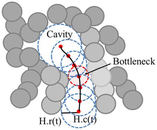A tunnel H(t) is represented as a set of empty balls with a center trajectory H.c(t) and radius H.r(t) (Figure 2). A bottleneck in the tunnel, H(t*), is defined as follows: