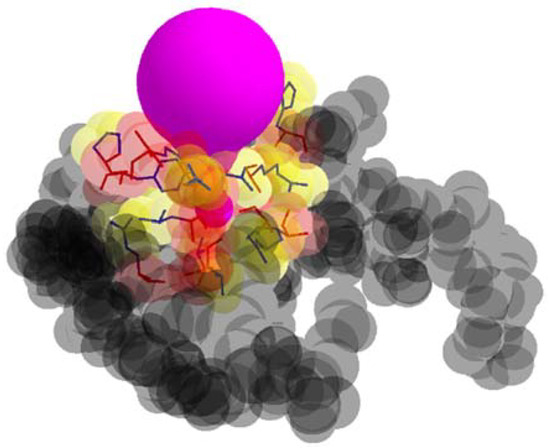 A tunnel (color purple), tunnel adjacent amino acids, and remaining amino acids (color gray).