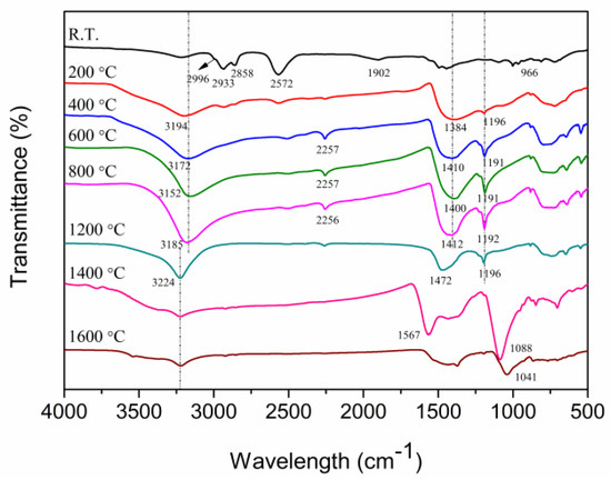 2.3. Ceramic Conversion Reactions of the P(ND-co-D)