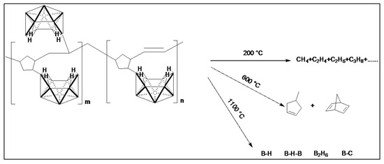 - Wei, X.; Carroll, P.J.; Sneddon, L.G. Ruthenium-catalyzed ring-opening polymerization syntheses of poly(organodecaboranes): New single-source boron-carbide precursors. Chem. Mater. 2006, 18, 1113–1123. [Google Scholar] [CrossRef]