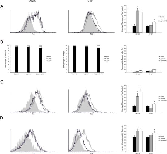 - Fagone, P.; Mangano, K.; Quattrocchi, C.; Cavalli, E.; Mammana, S.; Lombardo, G.A.G.; Pennisi, V.; Zocca, M.-B.; He, M.; Al-Abed, Y.; et al. Effects of NO-Hybridization on the Immunomodulatory Properties of the HIV Protease Inhibitors Lopinavir and Ritonavir. Basic Clin. Pharmacol. Toxicol. 2015, 117, 306–315. [Google Scholar] [CrossRef] [PubMed]