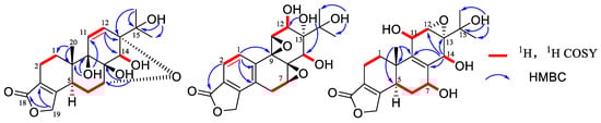 Key 1H,1H COSY and HMBC correlations of compounds 1–3.