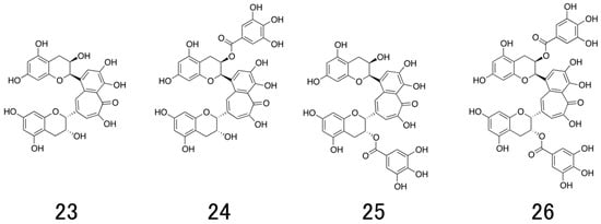 | Theasinensin A | 104.0–5.0/104.0 reduction at 100 μM | |||