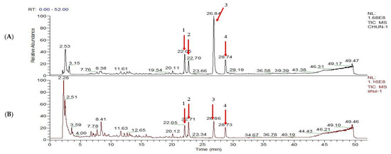 High-resolution MS data processing was carried out using the QualBrowser of Xcalibur 2.1 (Thermo Fisher Scientific), including EIC, calculation of elemental compositions using potential metabolite ions with 5-ppm mass tolerance and isotope pattern simulation. By comparison to data regarding reference substances and by referring to the relevant literature, the components of each extract were identified, and the structure and composition of these components were determined.