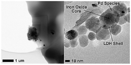 TEM images of the Pd-LDH@M catalyst. Reproduced with permission from [22].