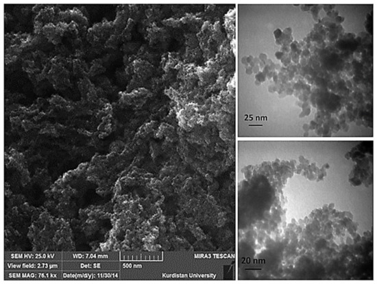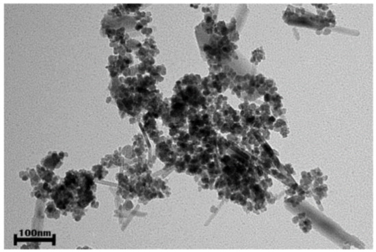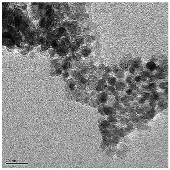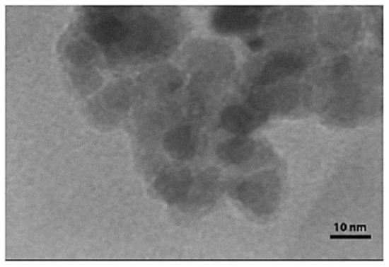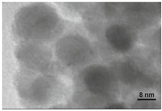 Transmission electron microscopy (TEM) image of magnetic nanoparticle (MNP)-grafted NCN pincer Pd catalyst. Reproduced with permission from [32].