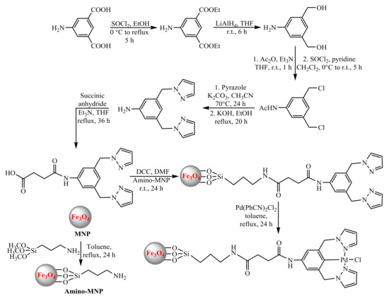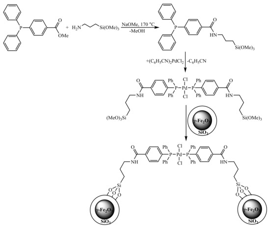 Synthesis of the palladium catalyst immobilized on superparamagnetic NPs [31].