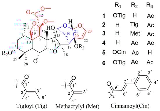 Chemical structures of limonoids 1–6.