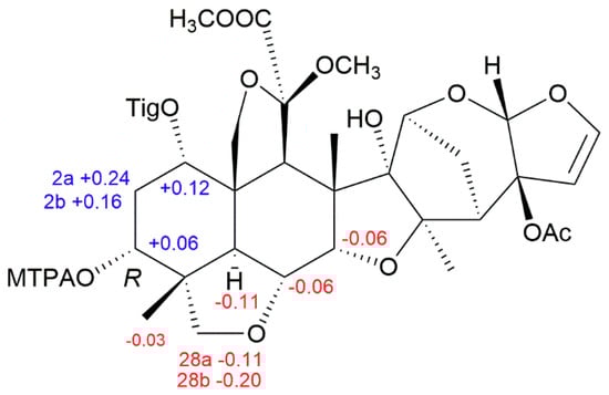 3.4. Preparation of the (S)- and (R)-MTPA Esters of Limonoid 1