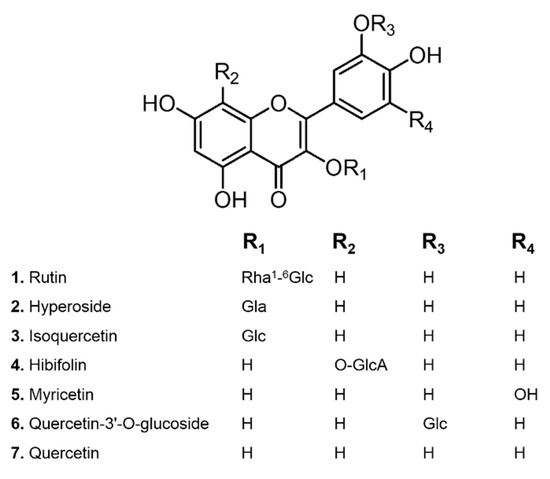 - Lu, L.; Qian, D.; Guo, J.; Xu, B.; Sha, M.; Duan, J. A quantitative method using one marker for simultaneous assay of seven flavonoids in the flowers of Abelmoschus manihot. Chin. J. Pharm. Anal. 2013, 33, 2082–2087. [Google Scholar]