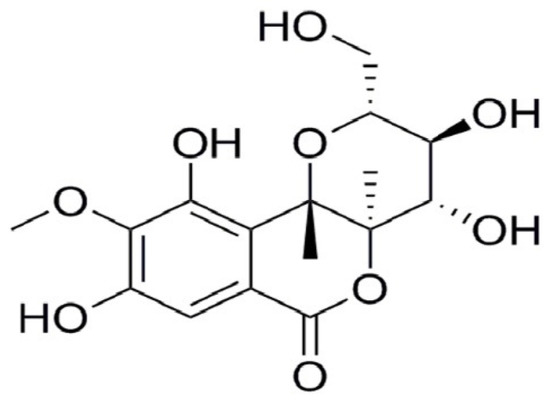 In recent years, a variety of medicinal plants have been shown to possess modulating functions of the innate and adaptive immune systems and have anti-oxidative characteristics [12,13]. In fact, Chinese herbal medicines have been widely used to protect against the side-effects associated with chemotherapeutics drugs in cancer treatment [14,15]. Bergenin is an active constituent of the plants of the genus Bergenia, which have been traditionally used for treatment of diarrhea, vomiting, fever, cough, pulmonary infections and menorrhagia [16]. Bergenin shows a wide range of pharmacological activities such as anti-arrhythmic, anti-inflammatory, anti-malarial, neuro- protective, and anti-tumor properties, and is widely used in Traditional Chinese Medicines [17,18,19,20,21,22]. Bergenin either acts as a free radical scavenger or a redox regulatory agent. In addition, bergenin has anti-inflammatory activity through selectively inhibiting COX-2 and modulating of Th1/Th2 cytokine balance [23,24,25].