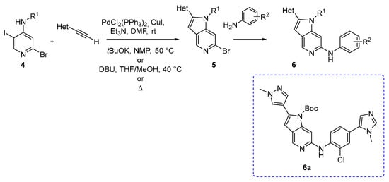 - Lachance, N.; April, M.; Joly, M.-A. Rapid and Efficient Microwave-Assisted Synthesis of 4-, 5-, 6- and 7-Azaindoles. Synthesis (Stuttg) 2005, 2005, 2571–2577. [Google Scholar] [CrossRef]
