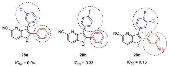 - Mérour, J.Y.; Buron, F.; Plé, K.; Bonnet, P.; Routier, S. The azaindole framework in the design of kinase inhibitors. Molecules 2014, 19, 19935–19979. [Google Scholar] [CrossRef] [PubMed]