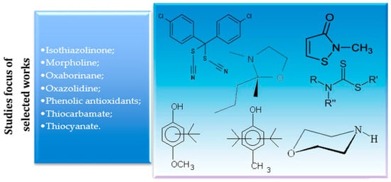 | [9] | Passman (2013) | Review | This work relates informations about the factors involved in fuel to the fuel system biodeterioration. | Diiodomethyl-p-tolylsulfone; Ethylene glycol monomethyl ether (EGME); Diethylene glycol monomethyl ether (DiEGME); Triethylene glycol monomethyl ether (TriEGME-M); dioxaborinane blend; Isothazolinone blend; morpholine-dinitromorphiline blend; 3,3’-methylenebis(5-methyloxazolidine) (MBO; 95–100% a.i.) | Studies about remediation strategies with biocide treatment. | The work provides information on antimicrobial studies, among others. | One of the results is that the fuel treatment represents a tiny fraction (<0.1%; Passman, 1995 [50]) of the total industrial microbiocides market. Although the use of fuel-treatment microbiocides is likely to increase, new chemistries are unlikely to emerge. |