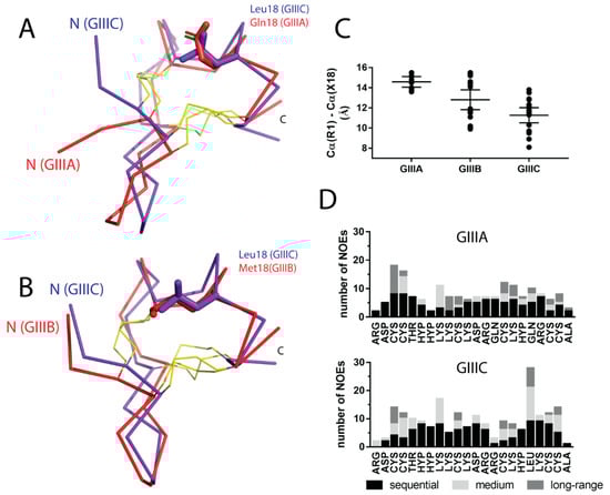 3.1. Structural Comparison of GIIIC with Other μ-Conotoxins