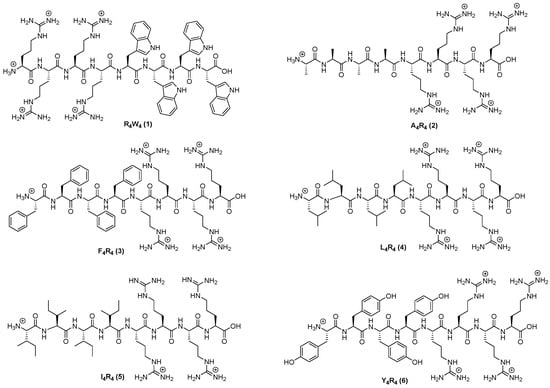 - Mandal, D.; Nasrolahi Shirazi, A.; Parang, K. Cell-penetrating homochiral cyclic peptides as nuclear-targeting molecular transporters. Angew. Chem. Int. Ed. Engl. 2011, 50, 9633–9637. [Google Scholar] [CrossRef] [PubMed]