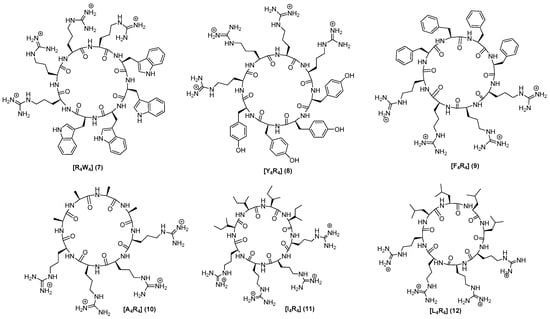 - Oh, D.; Sun, J.; Nasrolahi Shirazi, A.; LaPlante, K.L.; Rowley, D.C.; Parang, K. Antibacterial activities of amphiphilic cyclic cell-penetrating peptides against multidrug-resistant pathogens. Mol. Pharm. 2014, 11, 3528–3536. [Google Scholar] [CrossRef] [PubMed]