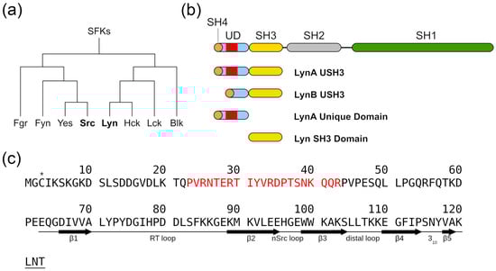 - Yi, T.; Bolen, J.B.; Ihle, J.N. Hematopoietic cells express two forms of lyn kinase differing by 21 amino acids in the amino terminus. Mol. Cell. Biol. 1991, 11, 2391–2398. [Google Scholar] [CrossRef] [PubMed]