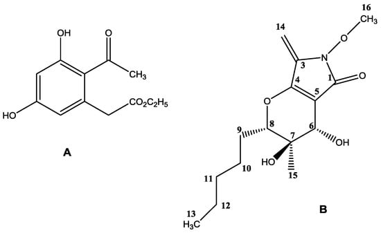 - Abzianidze, V.V.; Poluektova, E.V.; Bolshakova, K.P.; Panikorovskii, T.L.; Bogachenkov, A.S.; Berestetskiy, A.O. Crystal structure of natural phaeosphaeride A. Acta Cryst. 2015, E71, o625. [Google Scholar] [CrossRef] [PubMed]
