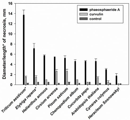 Poluektova E, Tokarev Y, Sokornova S, Chisty L, Evidente A, Berestetskiy A. Curvulin and Phaeosphaeride A from Paraphoma sp. VIZR 1.46 Isolated from Cirsium arvense as Potential Herbicides. Molecules. 2018; 23(11):2795. https://doi.org/10.3390/molecules23112795