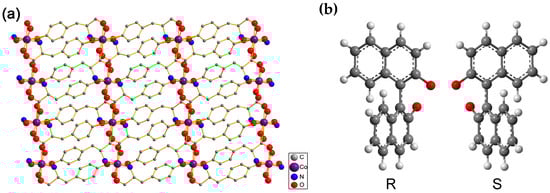 (a) 2D crystal structure of the chiral metal-organic framework (MOF), [Co(l-tyr)]n(l-tyrCo); (b) the structures of 1,1′-bi-2-naphthol enantiomers.
