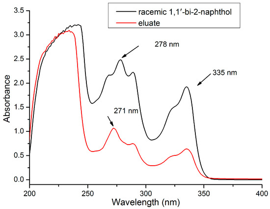 UV-visible spectra of racemic (±)-1,1′-bi-2-naphthol and eluate.