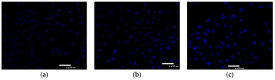 Apoptosis was further confirmed by analyzing the nuclear by Hoechst 33342 staining. The fluorescent dye, Hoechst 33342, is widely used to stain DNA for evaluating apoptosis of viable cells. It is a blue fluorescent dye that can penetrate cell membranes and is less toxic to cells [28,29]. A small amount of Hoechst 33342 can enter normal cell membranes, so normal cells are light blue. When apoptosis occurs, the permeability of cell membrane enhances, DNA structure changes, so the dye Hoechst 33342 can bind to DNA more effectively and displays bright blue fluorescence. Cell apoptosis can be judged by blue fluorescence level. In the control group (Figure 9a), nuclei were round and slightly stained. After being incubated with EPS-3a for 24 h (Figure 9b), some nuclei appeared hypercondensed (brightly stained). After treatment for 48 h, nuclei stained by Hoechst 33342 increased significantly and the chromatin further condensed (Figure 9c). The results demonstrated that EPS-3a could induce apoptosis of HepG2 cells.