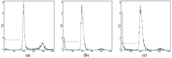 Flow cytometric analysis of DNA fragmentation. (a) Control, 0 h. (b) Cells treated with EPS-3a for 24 h. (c) Cells treated with EPS-3a for 48 h.