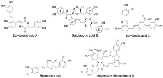 Sample Availability: Samples of the compounds (caffeic acid, rosmarinic acid, magnesium lithospermate B, salvianolic acid A, salvianolic acid B and salvianolic acid C) are available from the authors and commercial sources.