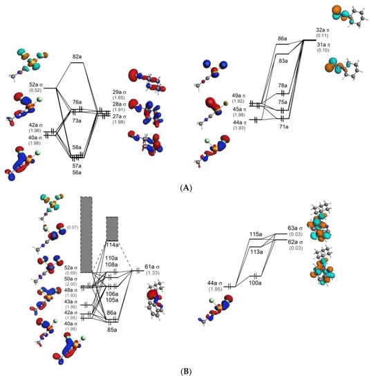 Finally, the bonding schemes illustrating the PdC ← N interactions in TS6 and TS14 are given in Figure 6. In contrast to TS6, the orbital 31a of indazole participates in the σ′ interaction in TS14. Despite the 31a orbital of indazole showing π character, the orientation of the interacting fragments provides the σ-type interaction between {Ind} and {1}.